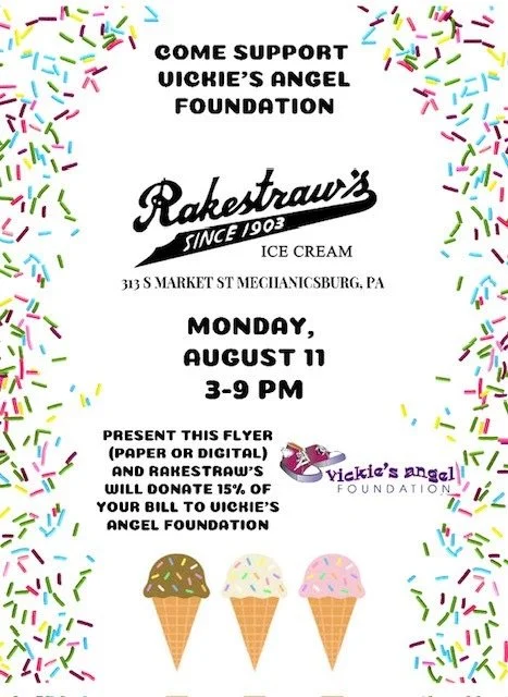 The Scrap Happy Angels are hosting a sweet fundraiser for Vickie’s Angel Walk! Stop by Rakestraw’s on Monday, August 11, between 3 and 9 PM and show the flyer (printed or on your phone). Rakestraw’s will donate 15% of your purchase to support our mission!